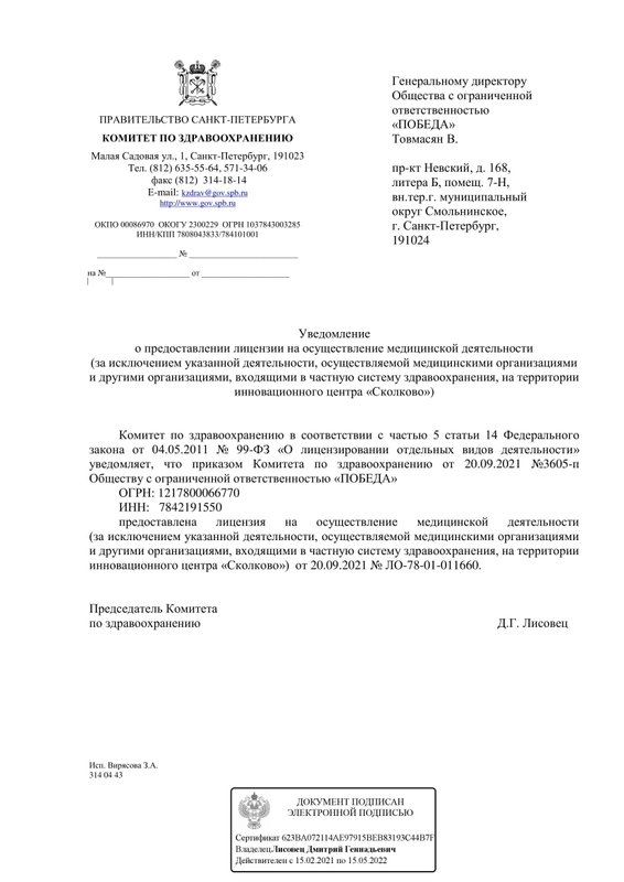 3. Окончила Санкт-Петербургский медико-социальный институт по специальности «Дерматовенерология»